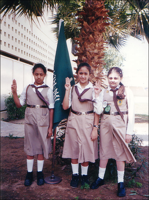 لايعلو صوت على صوت النظام في خطواتنا. ذلك الالتزام بالنظام وحده كان يكبح زمام الحماسة التي تبثها دقات فرقة المرشدات الموسيقية لنتبعها في مكان نقوم بزيارته للمرة الأولى ومع ذلك نبدو وكأننا نحفظ الطريق لموقعنا فيه عن ظهر قلب.