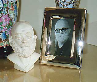 أنا في حالة شوق دائم لوطني الحبيب ( مصر ) ولا أنقطع عن زيارته وعشقه الذي ينعكس من خلال أعمالي واعتكافي أنا وزوجي على دراسة تاريخه وحضارته القديمة ولذلك لي أعمال عديدة لتجسيد هذا التاريخ بالرسم أو النحت وآخر لوحاتي هي لـ ( اخناتون ) وهو أول الفراعنة الذين دعوا إلى توحيد الله وقال أن الإله ليس الشمس.
