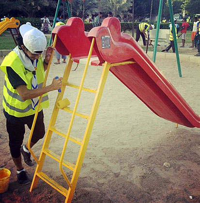وتضيف: "يتمثل دور الشركة في توفير المعدات وتدريب الفنيين على رأس العمل وتوفير فرص وظيفية موسمية لهم على مدار عامين (2013-2014) في صيانة الحدائق، ولا يقتصر الهدف على الصيانة بحد ذاتها بقدر ما نهدف على المدى المتوسط والبعيد إلى تغيير سلوك المواطن والمقيم تجاه المرافق العامة، ودورها الحيوي في الأحياء، والوظائف المهنية التي بالإمكان تطويرها لتمارسها بكفاءة السواعد السعودية، وبالرغم من أن عقودنا كشركة تجارية تقتصر على الزراعة والتشجير إلا أن الشباب المهني الكشفي أسهم كذلك في عمليات الصيانة وتحسين المكان ليظهر بالصورة المنشودة كوجهة ترفيهية للسكان".
