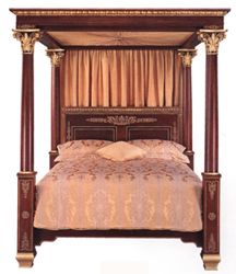 اقتناءك لأحد التحف الفنية النادرة هو بحد ذاته متعة خاصة إن كنتِ من هواة هذا الفن ولكن جمال القطعة يزداد عندما تكون فراش ملكي يحملك إلى القرن التاسع عشر حيث تعيشين في أجواء ملوك ذلك القرن والفخامة الطاغية التي تتجلى في نوعية الأخشاب الثمينة المستخدمة والتي تزينها نقوش يدوية أنيقة....كما يبرز بوضوح في تصاميم ذلك العصر الطراز الذي يتكون من أربع عواميد تنسدل عليها الستائر أو تكون في الخلفية فقط.