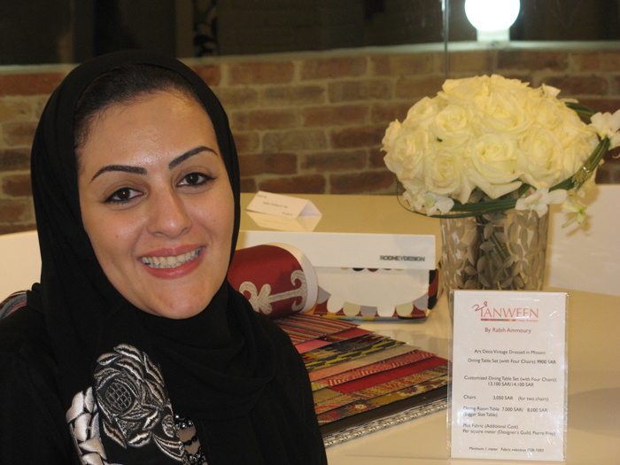 صممنا هذا المعرض لاستقبال أعمال المصممين قاطبة، لدينا أمينة خليل من مصر "تصميم ملابس"، نيفين مكتبي من لبنان "تصميم السجاد"، جراح البلوشي من الكويت "فن التصوير والغرافيك"، مي القصار من الكويت "تصميم مجوهرات"، مهن حسين من باكستان مقيمة في دبي "تصميم شنط"، اما أعمال السعوديين كانت في المعرض السابق الحديقة السرية، و معرضنا هذا تحت عنوان "نقطة".