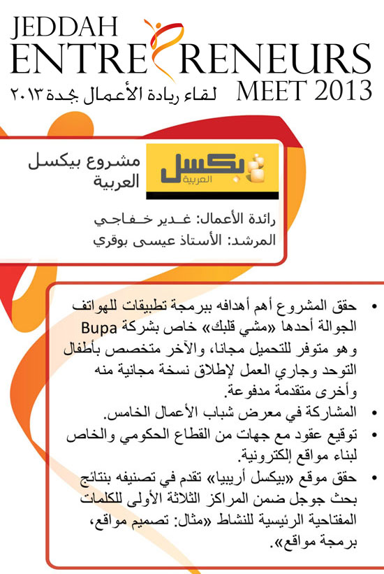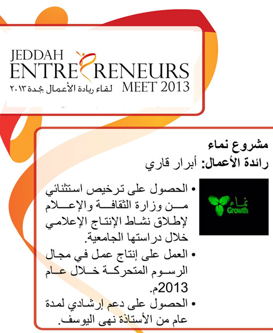 - ـ الإعلان عن محاور لقاء ريادة الأعمال بجدة 2013م.