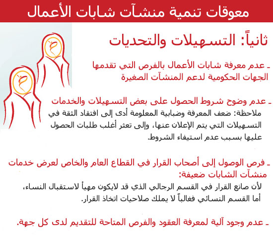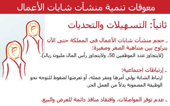 - ـ تفعيل مبادرات القطاع الخاص والعام لدعم منشآت شباب وشابات الأعمال