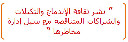 ـ نشر ثقافة الإندماج والتكتلات والشراكات المتناقصة مع سبل إدارة مخاطرها وتجنب المخاوف الشائعة منها.
