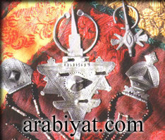 وتُعد "الخميسة" الشكل المتميز والفريد الذي يطبع الحلي وهي على شكل اليد المفتوحة تُعَلَّق في شكل "بروش" للمرأة المتزوجة حديثا وللمولود الجديد للتفاؤل .. كما نجد المرأة الصحراوية الأمازيغية الجميلة تطبع مجوهراتها بأحجار زرقاء ، أما شكل الهلال فله خصوصية إسلامية ، أكثر من هذا نجد بعض الحلي المحشوة بالعنبر تفوح منها رائحة المسك والعود.