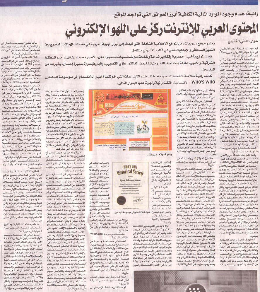أول مجلة عربية الكترونية | صدرت في مارس ٢٠٠٠م
