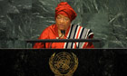 رئيس ليبيريا، المسؤولة عن تخفيف عبء الديون الكبيرة والتحريض على التحقيق في جرائم الحرب الأهلية .